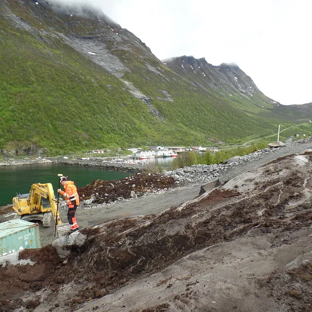 Total entreprise. Foretaket var ansvarlig søker, utførende og prosjekterende for opparbeidelse av nytt boligfelt på Husøy i Senja med 12 tomter. Graden av utnytting på hver tomt skal ikke overstige BYA= 40 % av tomtearealet. Infrastruktur veg, vann, avløp og gatelys. Oppbygging av nye veger med bære- og forsterkningslag og asfalt. Total entreprise. Omfatter veggrøfter og vegskråninger på begge siden av kommunal veg, denne ble maskinplanert og tilsådd. Opparbeidelse av felles privat adkomstveg, samt kommunal adkomstveg. Boliger med tilhørende uteområder skulle utformes etter prinsippet om best mulig tilgjengelighet for alle, samt at alt skulle være i samsvar med kravene i den gjeldende teknisk forskrift. Vannledning, Spillvannsledning og Overvannsledning på dimensjon 160 PVC. Satt ned 9 kummer, 4 stykker spillvann, 3 overvann og 2 vannkummer. Gravearbeid og fundamentering for 7 stykker veilys/lysmaster som tilknyttes eksisterende veilysanlegg.