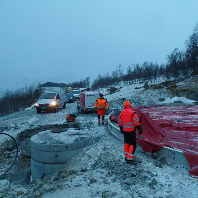 Uttak av tomt til Høydebasseng, etablering av adkomstveg og parkeringsareal. Levering og montering av drikkevannsbasseng og ventilkammer. Terrengarrondering utenfor drikkevannsbasseng og adkomstveg. Overføringsledning til basseng, og forsyningsledning fra basseng, lengde ca 270 meter. Føringsveger for el- og kommunikasjonskabler. Bygging av nytt høydebasseng i betong og gup. Bassenget skulle plasseres minimum 22,5 m fra fylkesveg. Isolering under og utenfor gulv på grunn til Høydebassenget. En total bredde 1,80 m og tykkelse på 10 mm. Det skal leveres og monteres et Ø110 rør som varerør for trykktransmitter i høydebassenget. Røret skal klamres fast til innvendig vegg i høydebassenget i nærheten av luke/stige. Lengde mellom 5-6 meter.