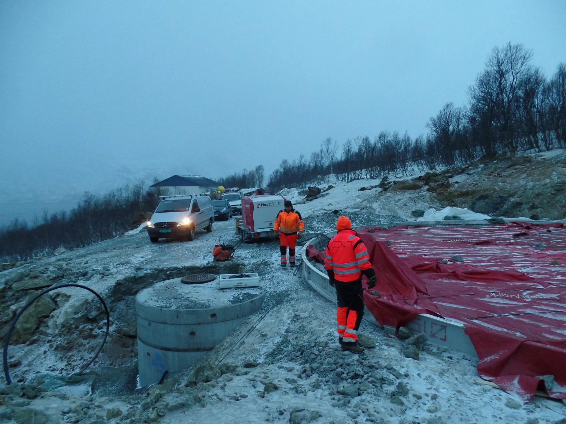 Uttak av tomt til Høydebasseng, etablering av adkomstveg og parkeringsareal. Levering og montering av drikkevannsbasseng og ventilkammer. Terrengarrondering utenfor drikkevannsbasseng og adkomstveg. Overføringsledning til basseng, og forsyningsledning fra basseng, lengde ca 270 meter. Føringsveger for el- og kommunikasjonskabler. Bygging av nytt høydebasseng i betong og gup. Bassenget skulle plasseres minimum 22,5 m fra fylkesveg. Isolering under og utenfor gulv på grunn til Høydebassenget. En total bredde 1,80 m og tykkelse på 10 mm. Det skal leveres og monteres et Ø110 rør som varerør for trykktransmitter i høydebassenget. Røret skal klamres fast til innvendig vegg i høydebassenget i nærheten av luke/stige. Lengde mellom 5-6 meter.