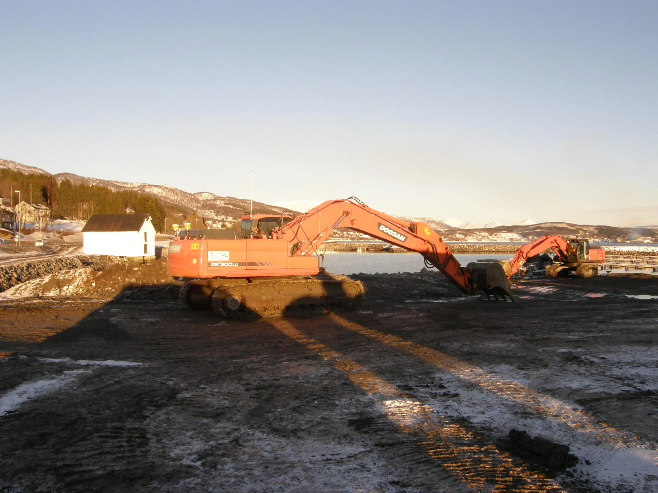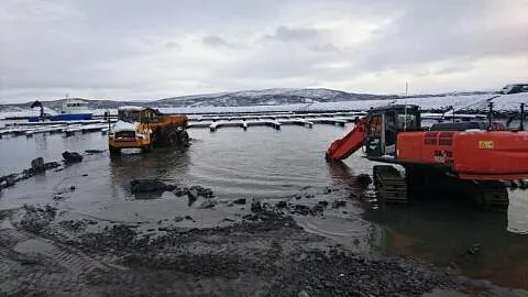 Sprengning og opplasting av ca 17000 tfm3 fjell i gammel molo. Plastring av 2 stk moloer på henholsvis 140 og 220 meter areal ca 6300m2. Plastringsdybde kt -4,5 Masseflytting ca 25000 m3. Mudring til Kt -6,5. Avretting av molo ferdig produkt. Foretaket var ansvarlig utførende for opparbeidelse av 2 stykk molo. Det ble sprengt og fjernet en mindre fjellknaus ved fylkesveien. Samt den gamle moloen. Steinmassene fra fjellknausen ble brukt som fyllingsmasse, slik at det ble etablert en forbindelse mellom land og de dumpete massene. Moloenes ytterside ble plastret og lagt opp etter profiltegningene. I moloene skulle det legges fram trekkerør for strøm, monteres fundamenter for lysmaster og etableres fortøyningsfester for flytebryggene. Plastring, mudring, sprengning. Avretting av molo ferdig produkt. Det ble også bygget en anleggsvei fra den gamle moloen til molo 1. Anleggsveien ble bygget i fjæra mot flytebryggene.