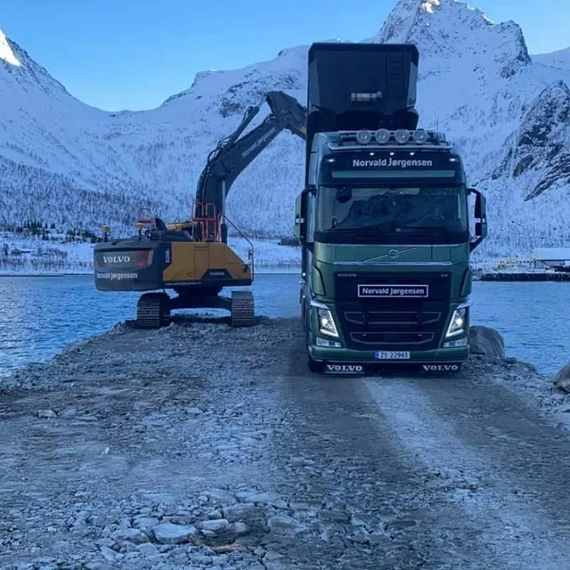 Utlegging av fiberduk etter beskrivelse for omfatningsmolo. Plastring/erosjonssikring av fyllingsfront. Opsjon: Mottak og utlegging av forurensede masser fra mudring av havna.