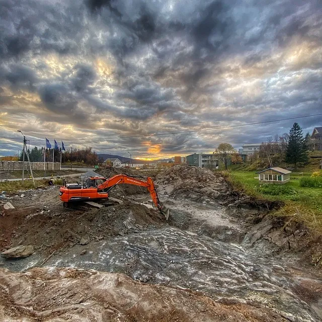 Prosjektet gjelder tomtutgraving og VA. Fundamentering på avrettet fylling med forsterkningslag av sprengstein og bærelag av grovpukk på bæredyktig stedlig leir over fjell. Asfaltering av parkeringsareal, samt grusing av gangvei til bolig og boder. Tilsåing av plen. Tilkobling av VA til kommunalt nett.